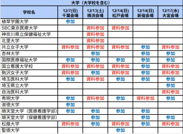 2025年冬期入試ガイダンス 参加校一覧(12/11更新)※50音順で表示