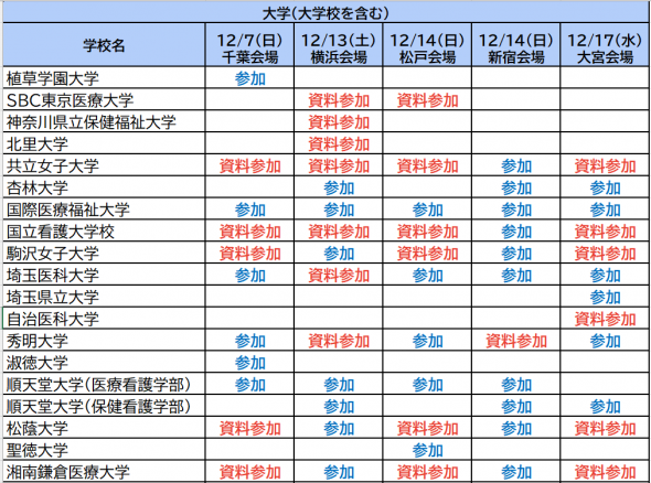 2025年冬期入試ガイダンス 参加校一覧(12/5更新)※50音順で表示