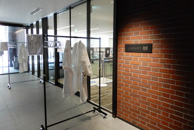 利用する際には、感染予防のために白衣を入り口のラックにかけます。